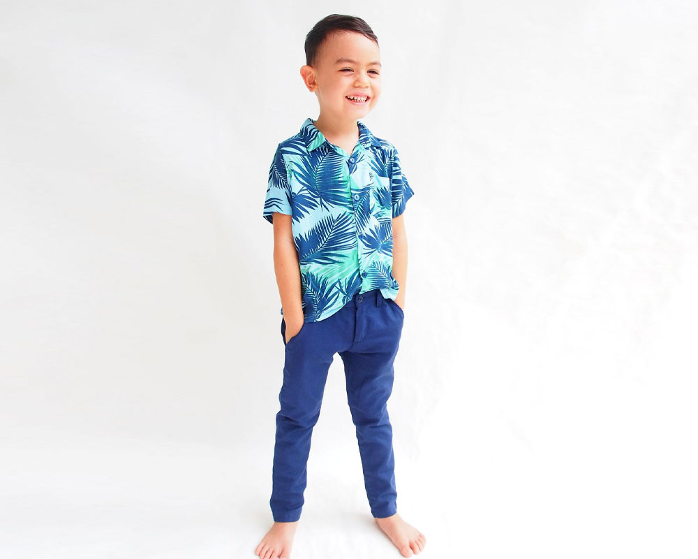 The pants are made from a beautiful Cotton / Linen blend fabric and look great on a boy or girl.