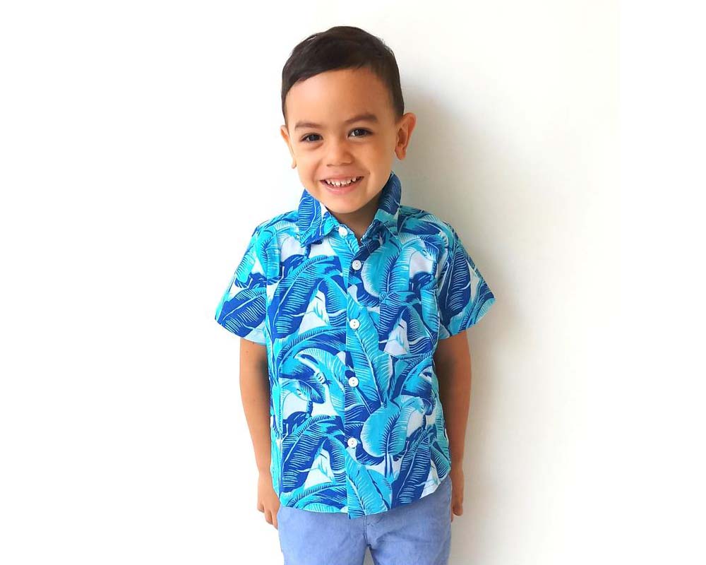 The short sleeved, casual Oxford Shirt / Collared Shirt comes in a lovely Blue Tropical print.