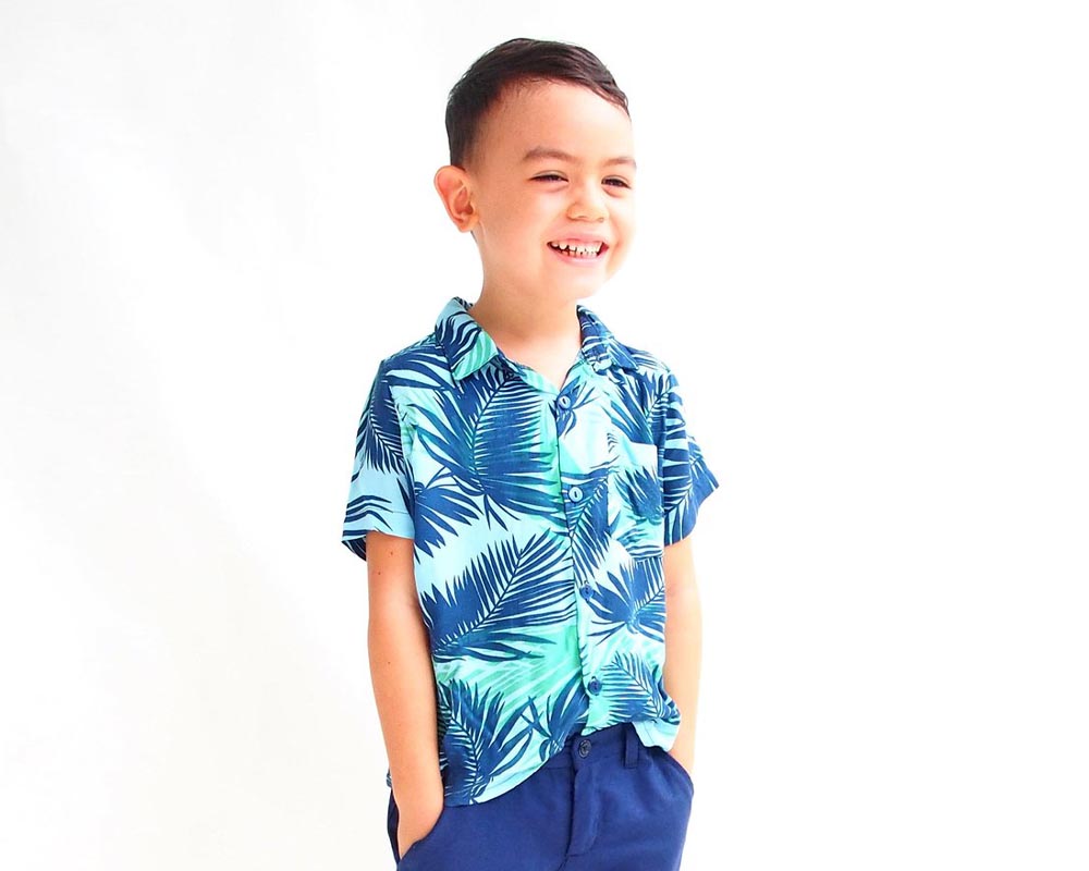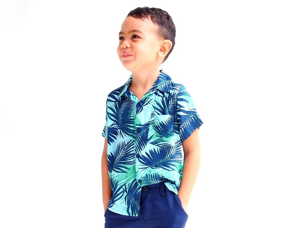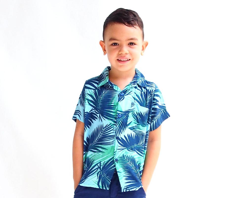 The short sleeved, casual Oxford Shirt / Collared Shirt comes in a lovely Blue Leaves print.